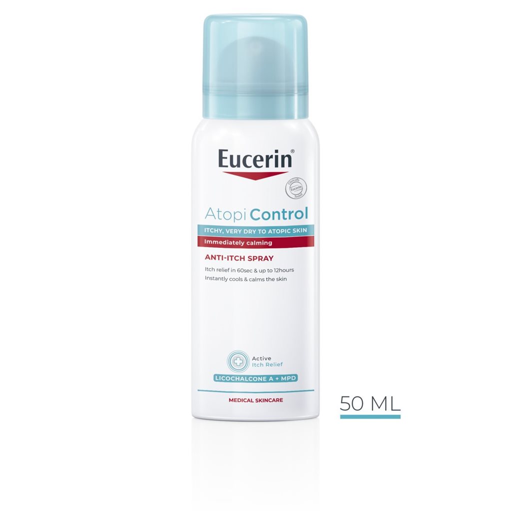 Eucerin AtopiControl niežėjimą malšinantis purškalas puikiai tinka atopinio dermatito sukeltam niežėjimui. Jį galima naudoti tiek paūmėjimų metu, tiek laikotarpiais tarp jų. Patogus naudoti. Be kvapiųjų medžiagų, greitai susigeria, neriebus, nelipnus.