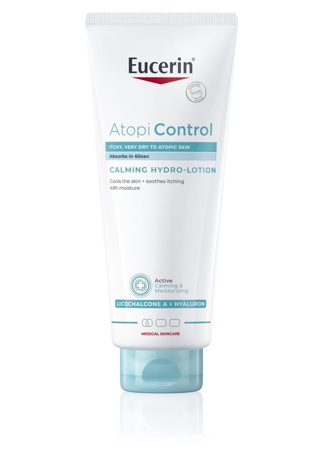Eucerin AtopiControl raminamasis drėkinamasis losjonas yra skirtas kasdieniam naudojimui. Jis specialiai sukurtas nuraminti ir intensyviai sudrėkinti sudirgusią ir niežtinčią odą. Likochalkono A, hialurono rūgšties ir keramidų derinys akimirksniu suteikia palengvėjimo jausmą, ramina niežtinčią, į egzemą linkusią odą ir užtikrina ilgalaikį odos komfortą. Reguliariai naudojant, odos būklė pastebimai pagerėja, oda tampa švelnesnė ir glotnesnė.